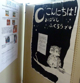 ![]() ロビーでは子どもと子どもの読書に関わるボランティア団体のパネルを展示。 それぞれの設立趣旨や活動内容を見ていただきました。 |