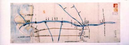 付け替え後間もない頃から、大和川は堺の絵図に描かれてきました。現在、大和川は大阪市との境界になっていますが、明治に入るまで摂津と和泉の国境は、堺の大小路でした。明治4年(1871)7月、当時の堺県が国境を大和川に定め、そのまま現在にいたっています。