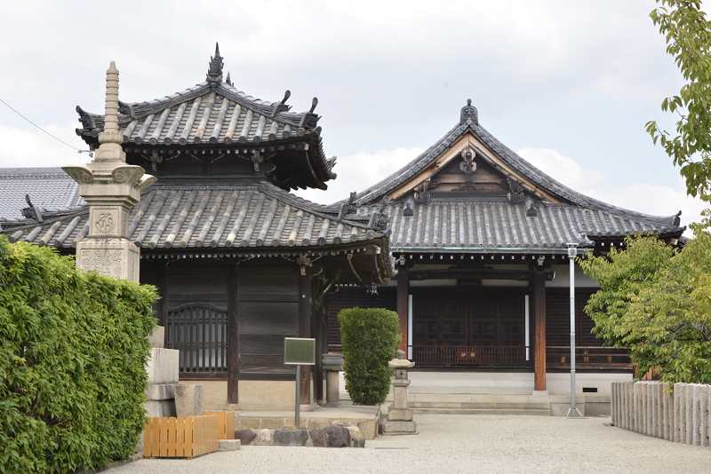 鎌倉時代末期、中国から帰朝した澄円(ちょうえん)上人の開創。現在は浄土宗知恩院末に属すが、廬山派・慧遠(えおん)大師の白蓮社(びゃくれんじゃ)の流れを汲む念仏本山として栄えた。明治維新後、堺県裁判所として本堂などが売却されたが、その後買い戻され復旧した。写真は江戸中期に再興された西を正面とする本堂と客殿で、昭和20年(1945)の堺大空襲で毘沙門堂を残しすべて焼失した。戦後の再建で南側が表門に、本堂も南向きになった。