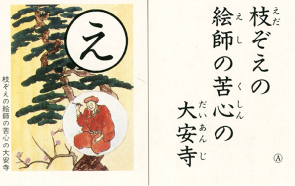 大安寺に居候していた絵師が、別れの名残りにふすまに絵を描いて東国へ旅立ったが、一ヶ月もたたないうちに突然戻ってきました。理由を問うと、描いた松が何か物足りないと思い気にかかっており、道中で良い枝ぶりの松を見て帰ってきたといい、ひと枝描き添えました。そののち、再び旅立っていったということです。